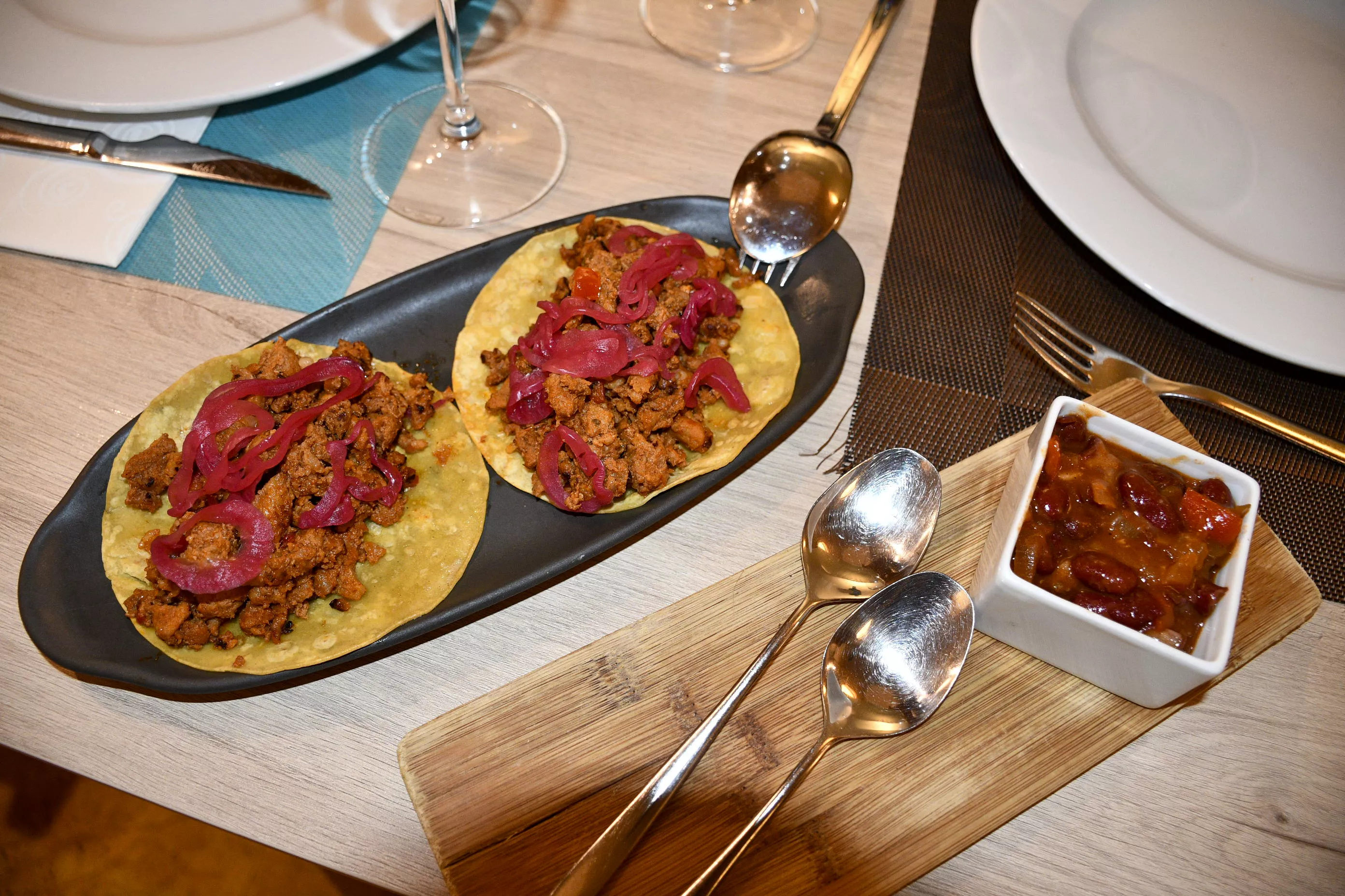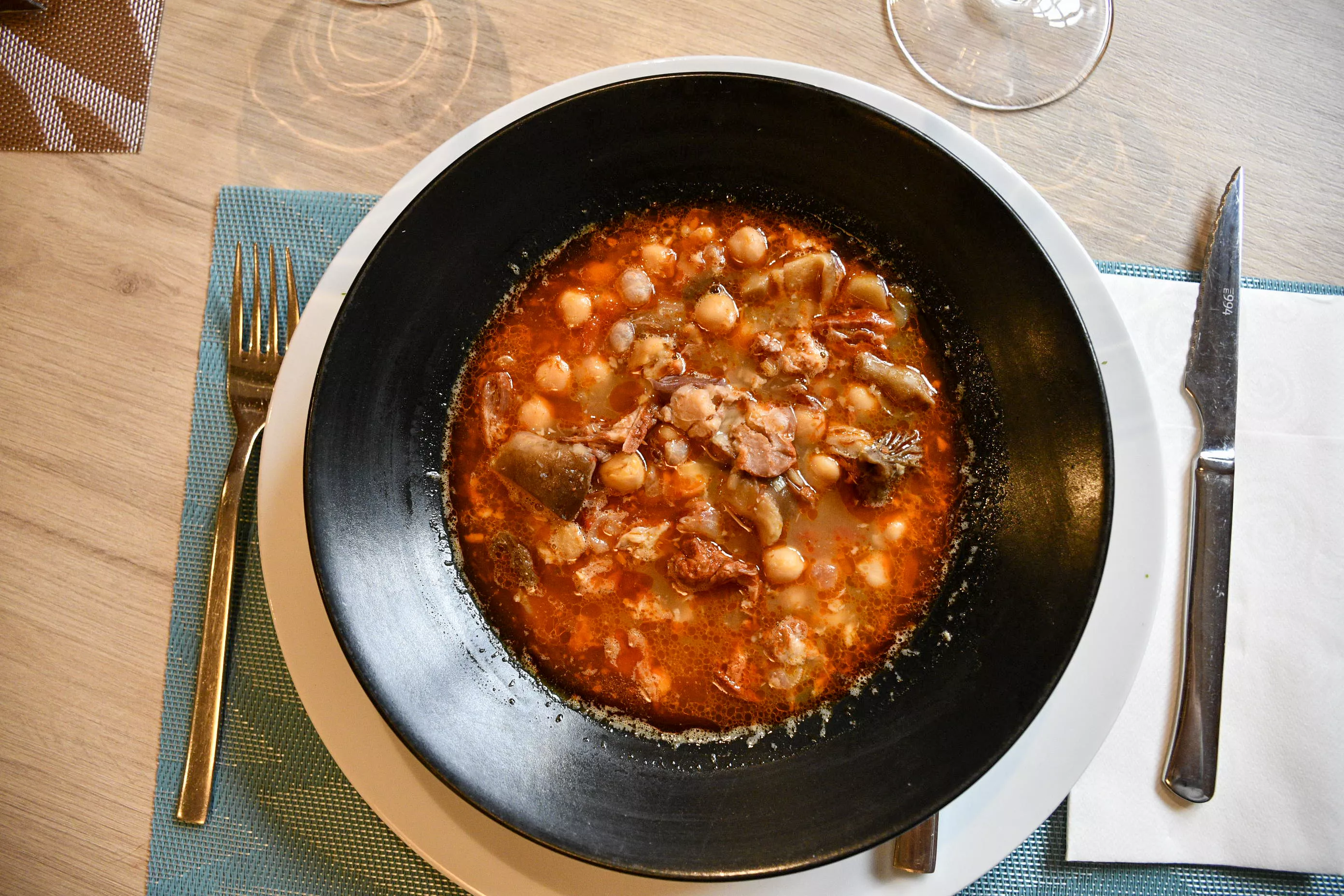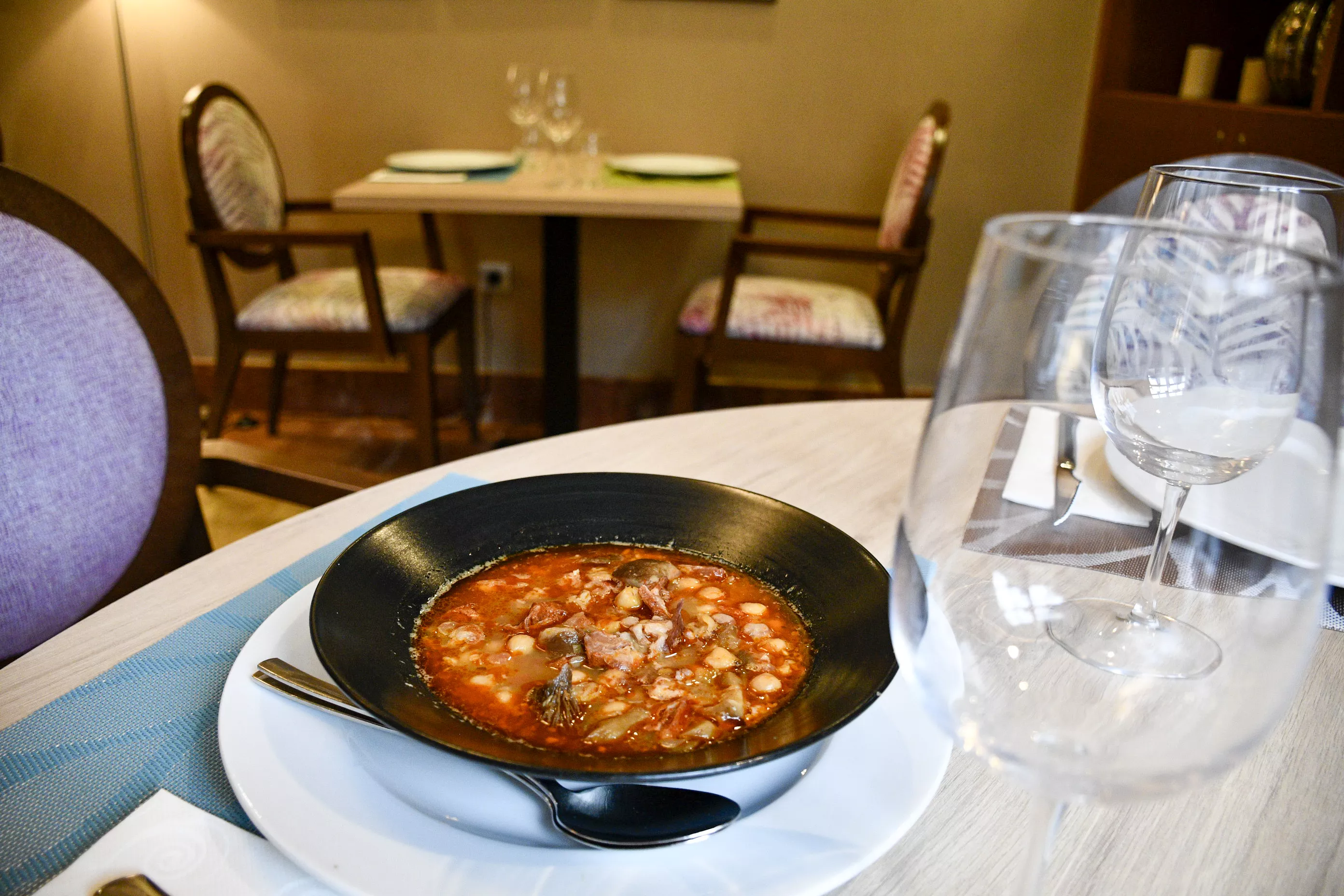 Las 5 opciones de los primeros platos son: potaje de garbanzos con setas y botillo, alubias con gambas y pulpo, tacos de chichos con alubias pintas y cebolla encurtida, además de tagliatelle con ragú de jabalí. Por último, también podemos decantarnos por una parrillada de verduras con salsa romesco.