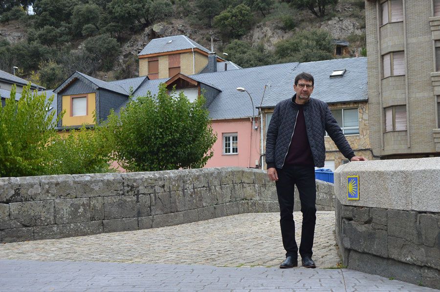 El alcalde de Torre del Bierzo, Gabriel Folgado, en el puente que ya cruzaban los peregrinos siglos atrás.El Camino del Manzanal, su paso por Torre