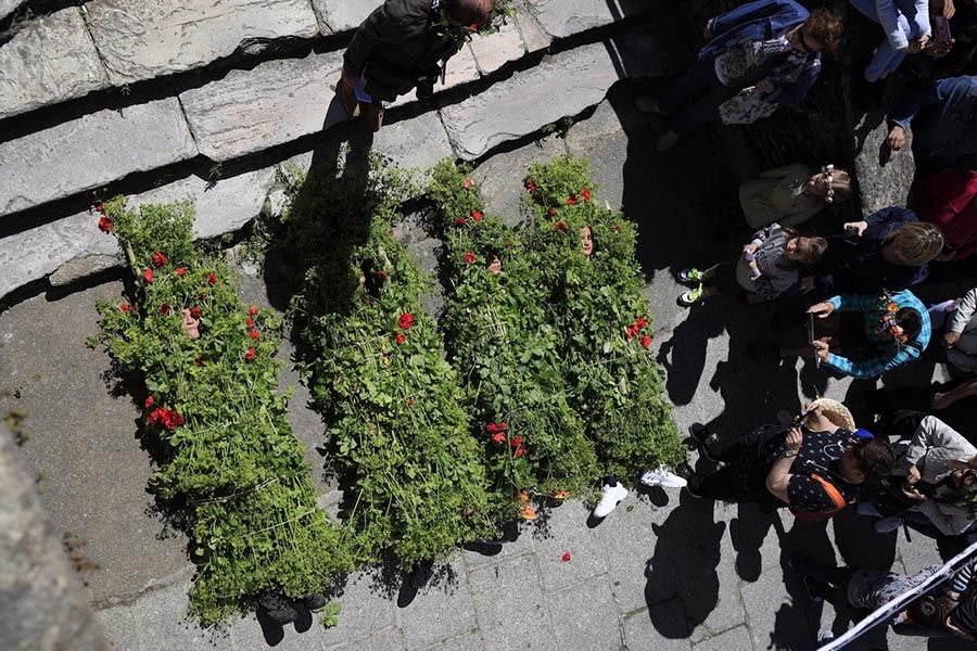 Como culmen de la celebración, todos se reúnen en la plaza Mayor para acostarse y cantar 'levántate maio, bastante dormiche, pasou un burro e non o sentiche', en referencia al 'Burro do Inverno' que han quemado la noche anterior. A continuación, la fiesta finaliza a ritmo de gaitas con una comida en la plaza del Campairo.