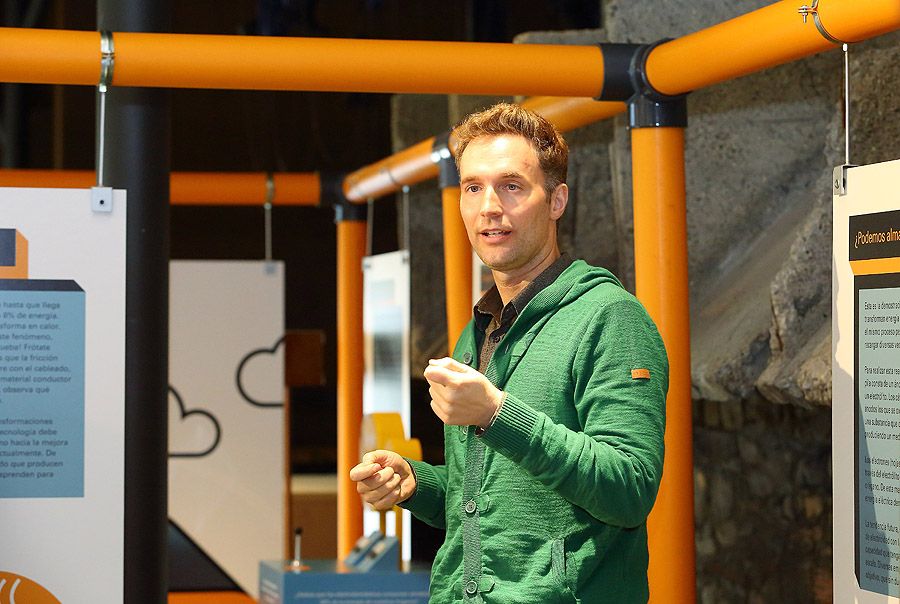 El divulgador científico Dani Jiménez, conocido por sus colaboraciones en el programa ‘Orbita Laika’ de TVE y en la revista ‘Muy Interesante’, se encarga del desarrollo de los experimentos de la muestra temporal que este viernes abrió sus puertas en el Museo de la Energía de Ponferrada. Bajo el título ‘¿Juegas? ¡Pensamos en energía!’, la exposición podrá visitarse en las instalaciones de la Fábrica de la Luz hasta el mes de julio, en la primera ocasión en que sale del Museo del Gas de la Fundación Gas Natural Fenosa en Sabadell (Barcelona). El físico, que también presenta el programa ‘Dinàmiks’ de la Televisió de Catalunya y es fundador y director de la empresa didáctica CreaCiència, considera que “si nuestra especie quiere seguir viviendo como hasta ahora, vamos a tener que ir hacia un nuevo modelo”.