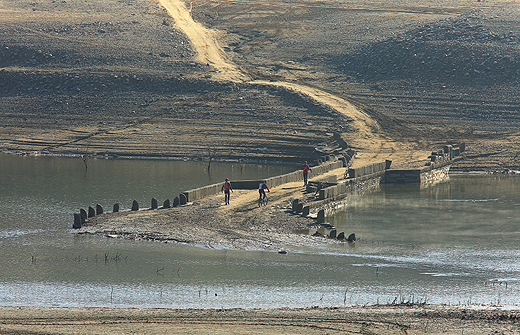 El bajo nivel de capacidad que presenta estos días el embalse de Bárcena, en Ponferrada, permite que una parte de la memoria sumergida aflore y deje al descubierto el antiguo puente del Camino Real de Carlos III, una infraestructura que data del siglo XVI y que quedó anegada bajo las aguas con la construcción del pantano, en 1960. Actualmente, el pantano se encuentra por debajo del 25 por ciento de su capacidad, con apenas 85 de los 340 hectómetros cúbicos de agua que puede albergar.
