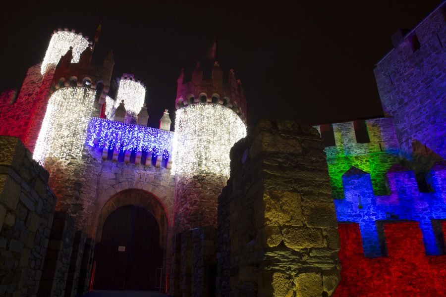 El Castillo de los Templarios ha encendido esta tarde sus luces navideñas para completar la iluminación de Ponferrada para estas fechas. Esta es la primera vez que la fortaleza de la capital berciana se llena de luces, algo que le sumará atractivo de cara a los turistas que visiten Ponferrada en estas fechas festivas y para los propios bercianos, que podrán admirar uno de los símbolos más reconocidos de la ciudad iluminado de forma especial para estas navidades.