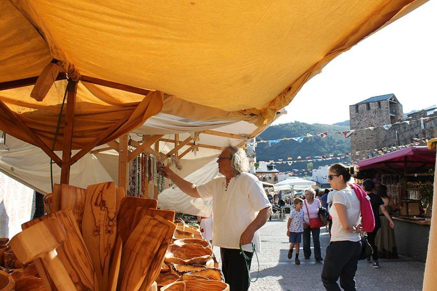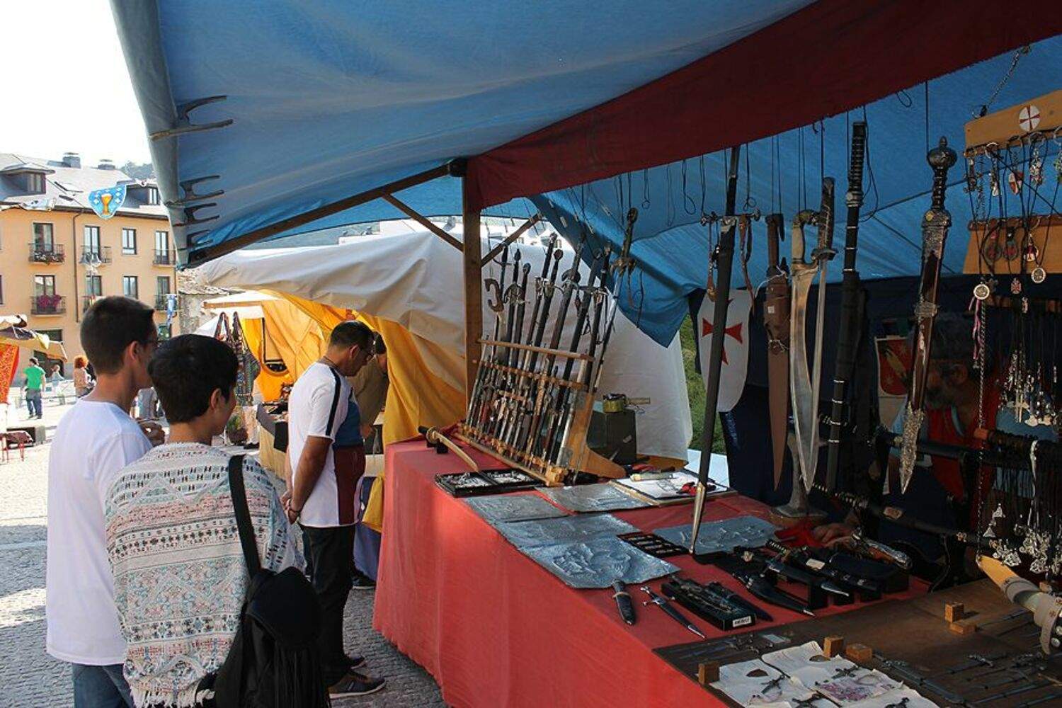Artesanos del cuero, cerámica, armas, plata, bisutería, y una oferta gastronómica desde el pulpo al pan de leña, cervecería o crepes se ofrecen al paso por estas calles y plazas emblemáticas. Y también existen actividades como el carrusel y el galeón para los más pequeños.