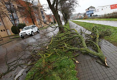 Los bomberos y el servicio de Emergencias 112 han atendido una decena de alertas relacionadas con el temporal en la Comarca. Árboles caídos sobre carretera y algunos cascotes desprendidos.