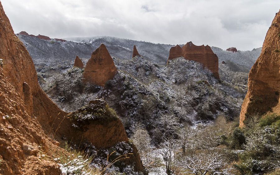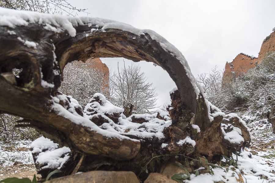 La bajada de las temperaturas y la llegada de la nieve para recibir a la primavera se extenderá durante toda la semana en El Bierzo. El miércoles la nieve cayó sobre varios puntos de la Comarca dejando estampas como la de Las Médulas nevadas, uno de los puntos turísticos declarado Patrimonio de la Humanidad por la UNESCO, que ha cubierto con un manto blanco su característico tono rojizo.