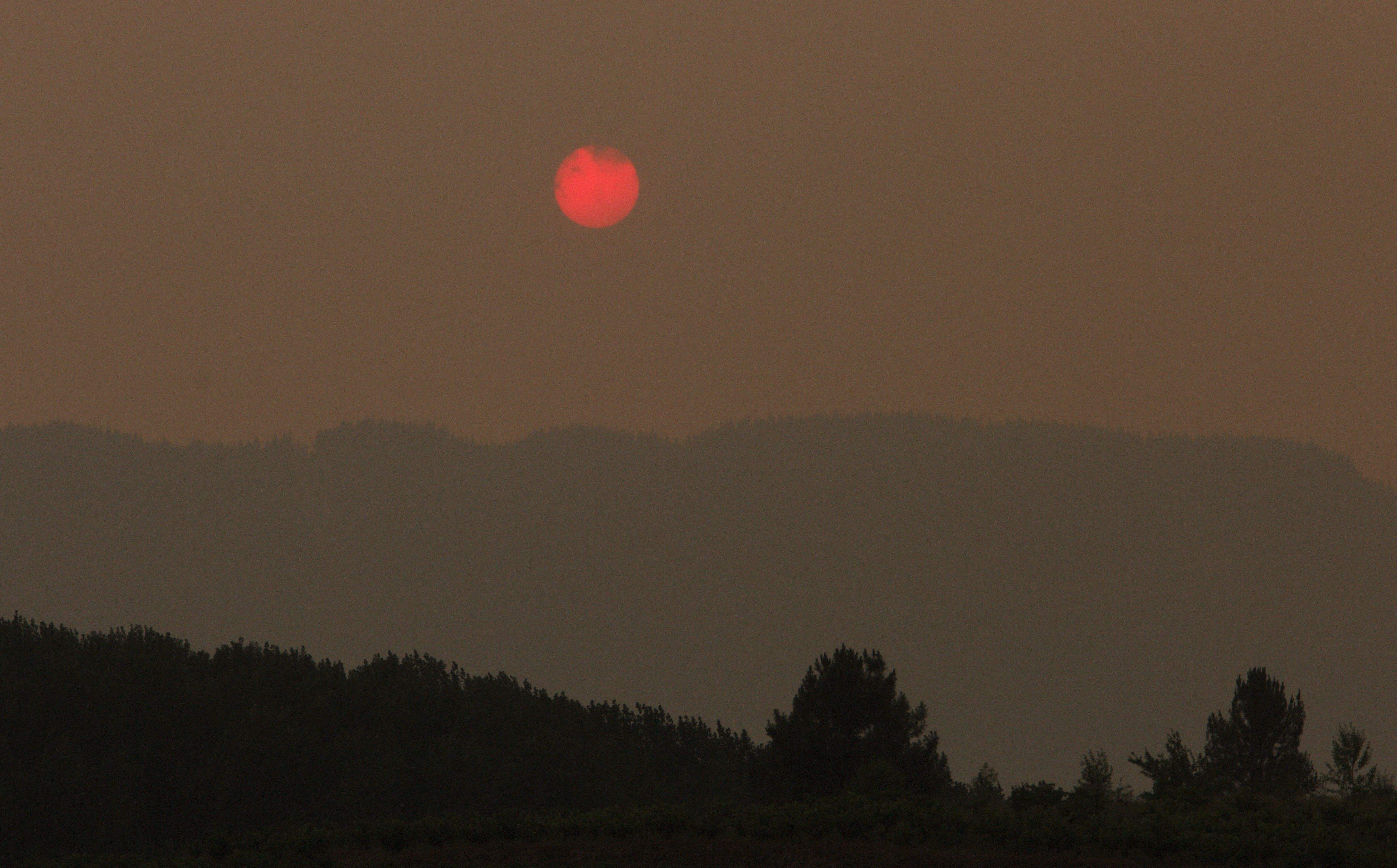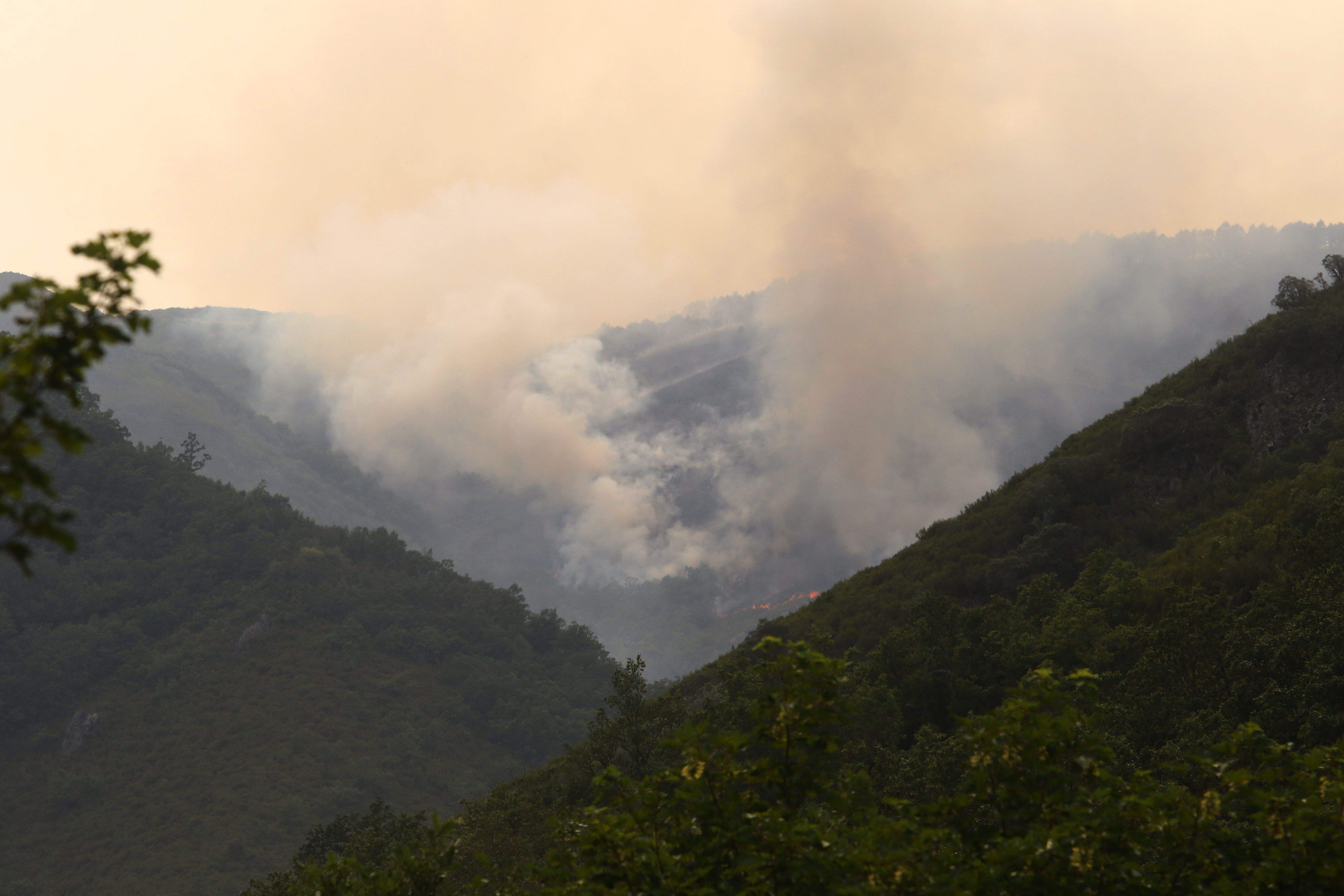 Incendio en el monte Aquiana, por el que ha tenido que ser desalojado el pueblo de San Adrián