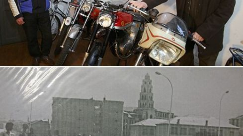 Fotografía antigua de una de las pruebas motociclístas en Ponferrada, organizado por la familia Prieto, cuyo negocio cumple cien años