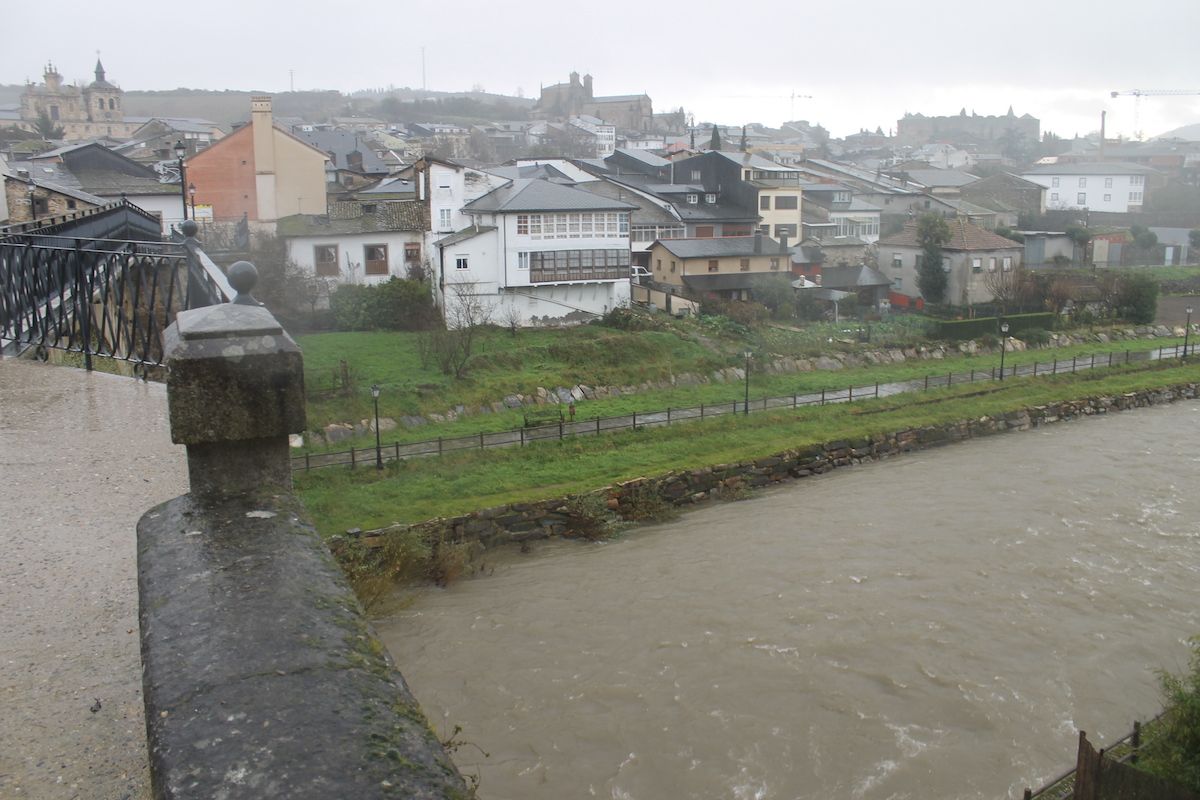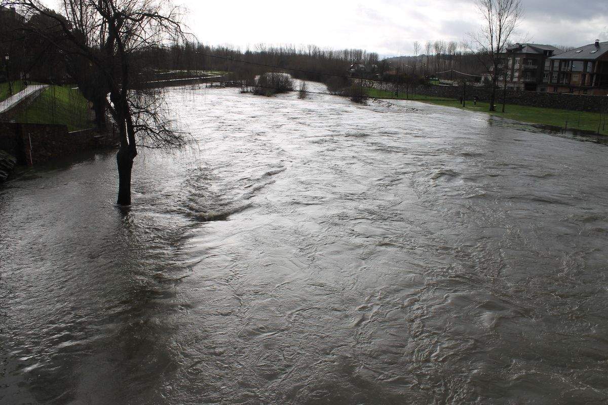 En Villafranca, el Burbia ha crecido desde los habituales 0,7 metros de altura hasta el metro y medio que se ha podido medir este martes, y baja del umbral de activación de las alertas en este punto. El caudal del Burbia también se ha rebajado en las últimas horas, puesto que llegó a 140 hm3 por segundo, y este martes ha descendido a 56 m3/s.