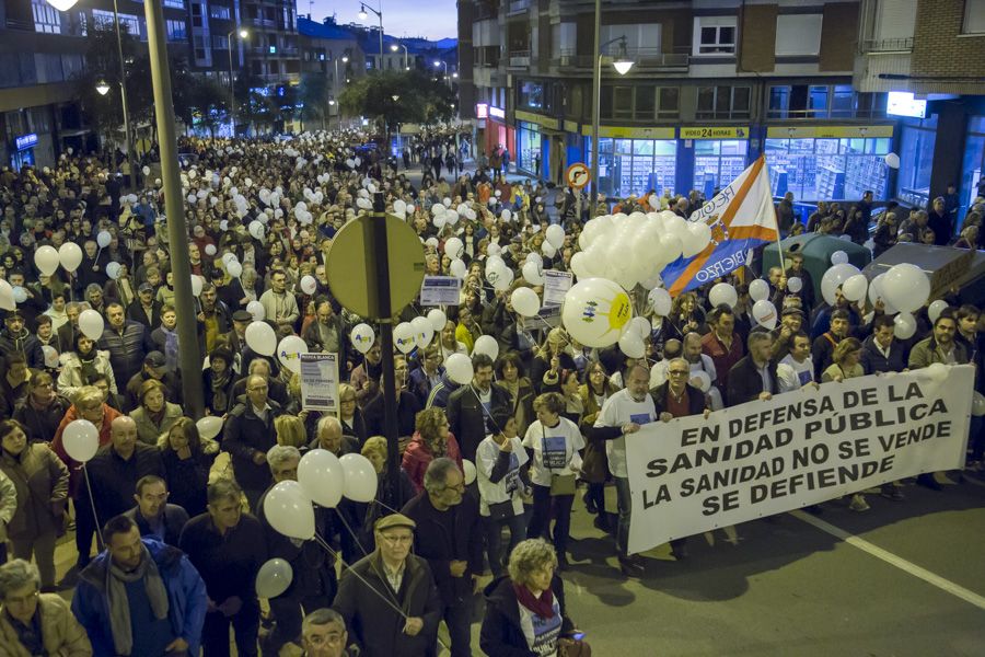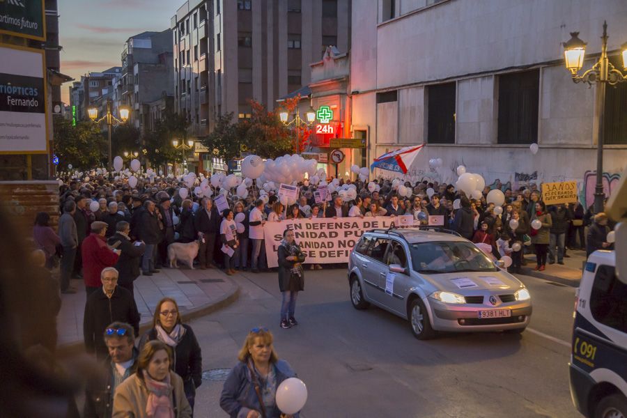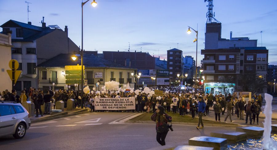 La 'marea blanca' en defensa de la sanidad del Bierzo y Laciana ha salido este jueves a la calle para exigir y reivindicar, una vez más, "unos servicios dignos, de calidad y públicos". Pasadas las siete de la tarde, más de 7.000 personas -según fuentes oficiales y cerca de 10.000 según la plataforma- se dieron cita en la Plaza Lazúrtegui para formar parte de ese recorrido por las principales calles de Ponferrada hasta el Ayuntamiento, apoyando, sobre todas las cosas, "una solución al detrimento que está sufriendo la sanidad en esta Comarca y en Laciana".