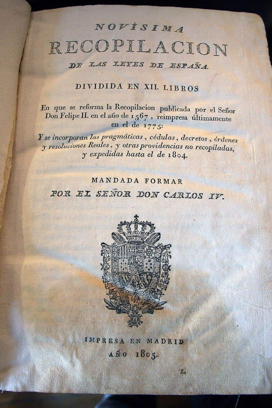 Esta publicación consta de 12 libros, 340 títulos, y contiene 4.020 leyes, autos y pragmáticas con un amplio y útil índice final por materias y disposiciones, que se convirtió en un texto fundamental para los estudios de derecho en el siglo XIX tras su publicación en 1805. En sus páginas se regula desde “la Santa Iglesia, sus derechos, bienes y rentas” a la “Real Jurisdicción ordinaria y su exercicio en el Supremo Consejo de Castilla”, “de las artes, ciencias y oficios “ o “del Rey y de su Real Casa y Corte”, donde alude a las leyes de sucesión y, también, de sus casas, sitios y bosques reales.