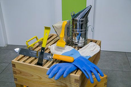 Para manipular la colmena, después de controlar a las abejas, el material mínimo que se necesita es el levanta-cuadros, la espátula y el cepillo. El levanta-cuadros se utiliza para subir los cuadros donde están la cera y las abejas "para poder mirar si tienen alguna enfermedad, si hay crías y cómo va la miel antes de su retirada". La espátula se emplea para despegar los cuadros que las abejas van pegando unos con otros o a la colmena con cera o propóleo, "tienes que ir rompiendo este 'pegamento' con la espátula para poder sacar los cuadros", explica la empleada de Animalia Servet. En cuanto al cepillo, "sirve para eliminar a las abejas de los cuadros para recoger la miel sin hacerles daño", 'barriéndolas' para enviarlas al interior de la colmena.