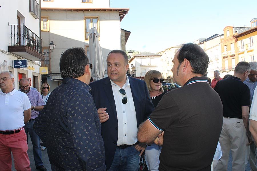 Tras la entrega de dos ramos de flores por parte del alcalde de la villa del Burbia, José Manuel Pereira, en nombre del pueblo y de la corporación municipal, el poeta villafranquino Juan Carlos Mestre leyó su poema 'La hija del sastre', una pieza llena de memoria dedicada a quienes sufrieron la represión en Villafranca del Bierzo.