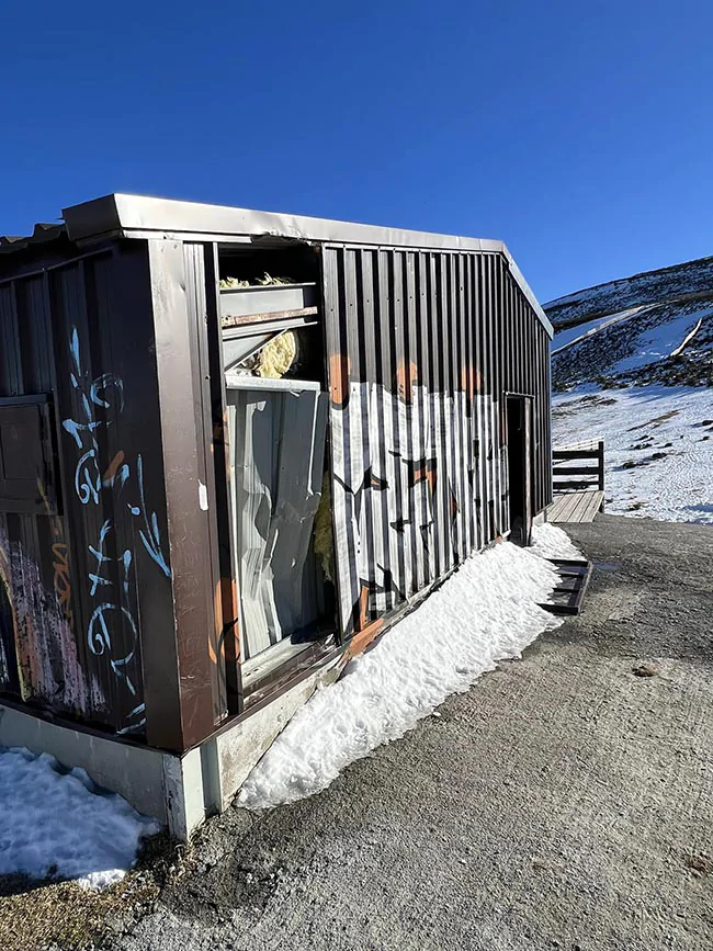 Fotos: Goyo Pérez FacebookParedes rotas, suelos cubiertos de mugre que se mezcla con la nieve, grafitis, etc. En esto se ha convertido la que en un día fue la estación del Morredero, y de la que ahora solo queda su esqueleto, el edificio, pero nada más.