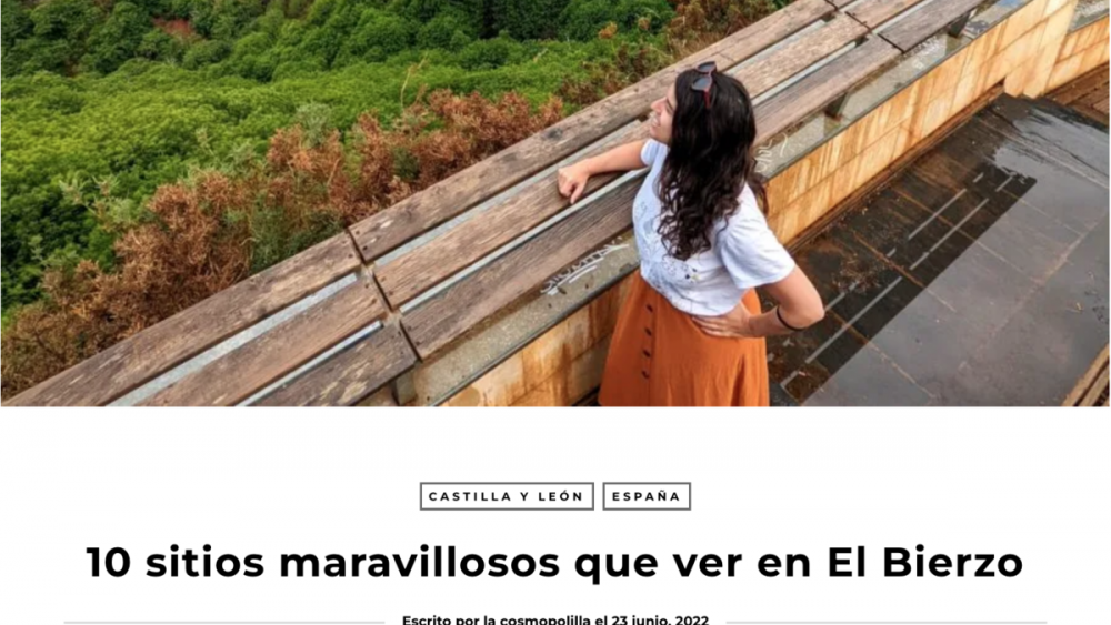 Tras "enamorarse del Bierzo", Rojas decide escribir una entrada en su Blog sobre '10 sitios maravillosos que ver en El Bierzo'. Ponferrada, la Herrería de Compludo, Peñalba de Santiago, Las Médulas, el Castillo de Cornatel, Molinaseca, Villafranca del Bierzo, el Palacio de Canedo, el Monasterio de Santa María de Carracedo y Balboa son los 10 imprescindibles de la cronista en la Comarca.