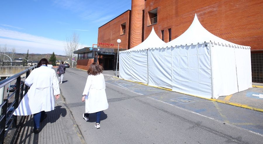 El 12 de marzo, el Hospital El Bierzo instaló una carpa en las puertas del área de Urgencias para separar entradas de posibles coronavirus del resto de casos comunes de urgencias. Los representantes de la gerencia del Hospital del Bierzo explicaron que “la idea es hacer un cribado y establecer 4 circuitos; uno para los niños, otro para las embarazadas, otro para las personas con síntomas respiratorios y otros para los que no tengan síntomas respiratorios”. Lamentablemente se iba a convertir en la zona 'cero' de la pandemia en la Comarca. (Foto César Sánchez / ICAL)