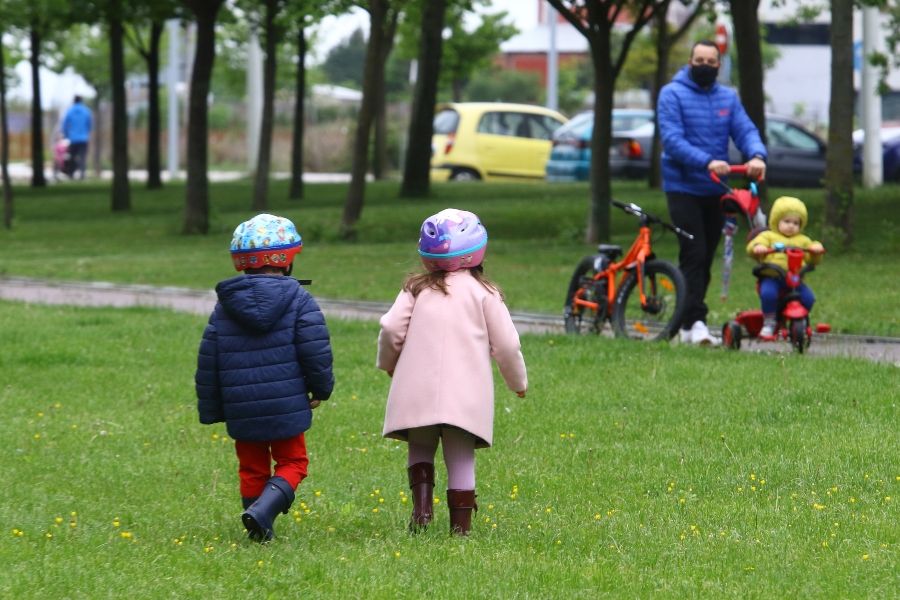 El 26 de abril, los niños salieron a la calle por primera vez después de 43 días de confinamiento, tras la aprobación del Gobierno de que los más pequeños pudiesen dar un paseo diario. Redescubrieron una imagen muy diferente a la que conocían hasta entonces, unas calles vacías, no poder jugar con otros amigos y las mascarillas cubriendo la sonrisa de los adultos. (Foto: César Sánchez / ICAL)