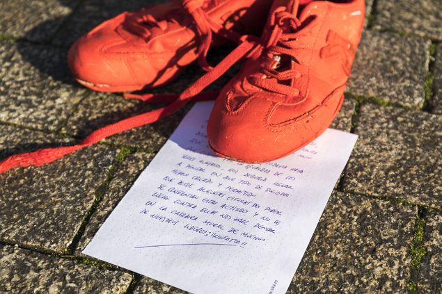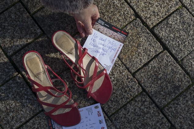 La Plaza del Ayuntamiento de Ponferrada ha sido escenario este jueves de un emblema, 166 pares de zapatos rojos visualizan una lacra que no merma. "Una imagen vale más que mil palabras", asegura el concejal de Bienestar Social, Pedro Muñoz. La iniciativa, que comenzó en el año 2009 en Ciudad Juárez como símbolo contra los feminicidios, ha viajado ya por numerosos países. Los zapatos rojos han recorrido ciudades de México, Argentina, Italia o España. Su última parada ha sido Soria, pasando ahora a Ponferrada, donde permanecerán hasta que otra ciudad los reclame. En cada ciudad el número de zapatos se incrementa con las donaciones de la gente, 138 pares llegaron a la capital del Bierzo, que ya ha aportado 28 pares más. Los ponferradinos han visitado la muestra a lo largo de toda la mañana, escribiendo y repartiendo notas con mensajes de ánimo y de repulsa contra la violencia machista debajo de cada par de zapatos .