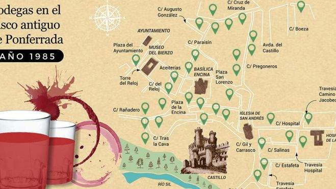 El Tigre (situada detrás de la Basílica de la Encina) adoptó su nombre precisamente de uno de sus pinchos. En El Pescador (en la calle Cruz de Miranda) el cliente puede darse un paseo fotográfico por décadas de historia de Ponferrada colgadas en sus paredes de piedra mientras disfruta de sopas de ajo o fabada. Y en El Racimo (en la calle Los Almendros, cerca de la calle Ancha) se mantiene la tradición de servir el vino propio de la casa.