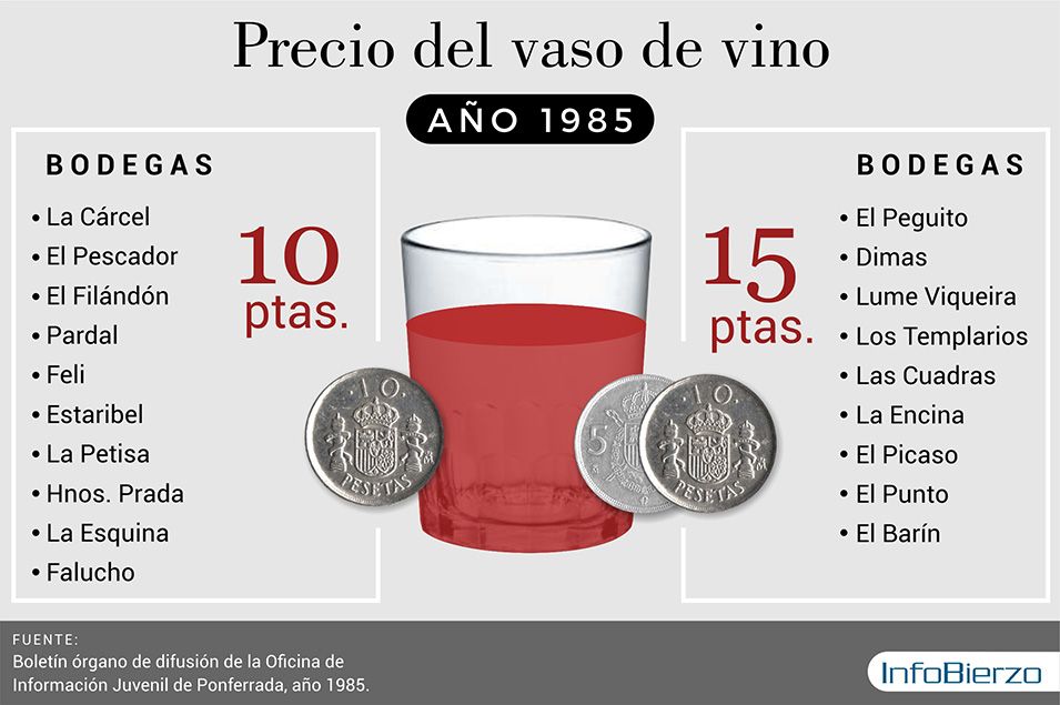 Dicen que en Ponferrada llegó a haber más de 40 bodegas, que tomaban mucho protagonismo entre los chavales el día de entrega de las notas, los fines de semana o en fechas festivas como la Semana Santa. El vino de la casa era su principal reclamo, pero también otras bebidas peculiares como la ‘leche de pantera’ o el ‘tumbadiós’. También atraían a la clientela los pinchos, algunos tan característicos que incluso llegaron a rebautizar popularmente como La Oreja a la bodega El Sordo, que ya echó el cierre en la calle Pregoneros.