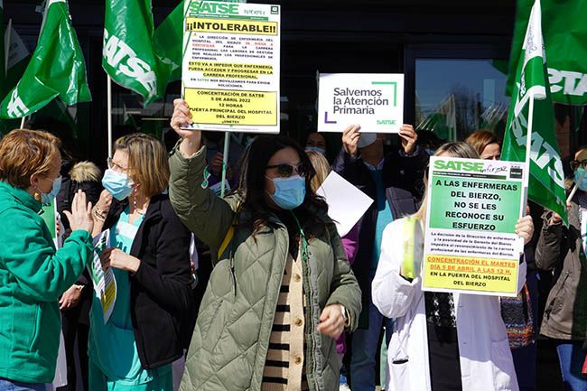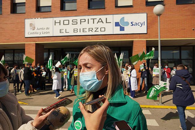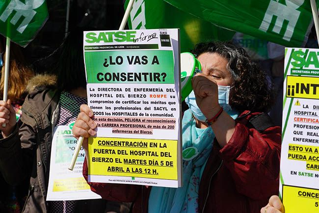 Enfermeras y enfermeros del Bierzo se han concentrado este martes en el Hospital del Bierzo para denunciar que 250 profesionales de esta categoría del Bierzo se quedarán sin el reconocimiento de Carrera Profesional por la decisión "arbitraria de la Dirección de enfermería", según denunciaron este martes.