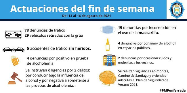 Este puente la Policía de Ponferrada ha cursado 4 denuncias por botellón y dos juicios rápidos: uno por conducir bajo los efectos del alcohol y otro por no querer someterse a esta prueba.