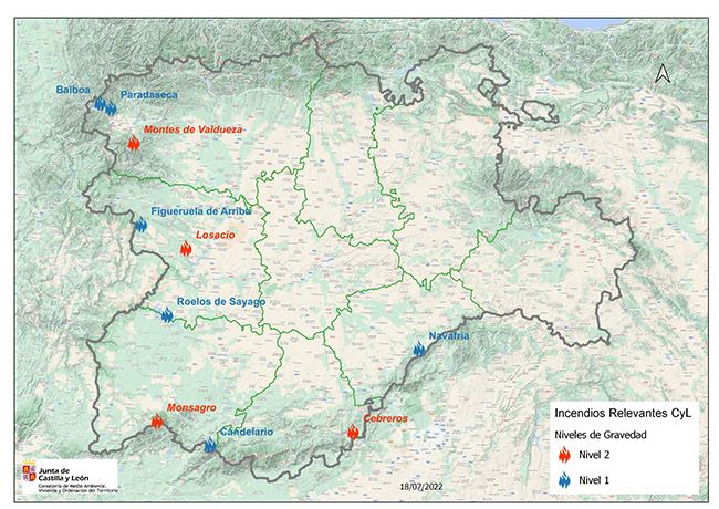 El incendio de Montes de Valdueza ya se encuentra en nivel 2, comenzó este domingo y avanza con rapidez, para su extinción están trabajando 2 técnicos, un agente medio ambiental, un helicóptero de Villaeles y otro de Camposagrado, una cuadrilla helitransportada, 1 bulldozer, 2 autobombas y 2 cuadrillas de tierra. Todavía se desconoce el perímetro afectado así como su causa.