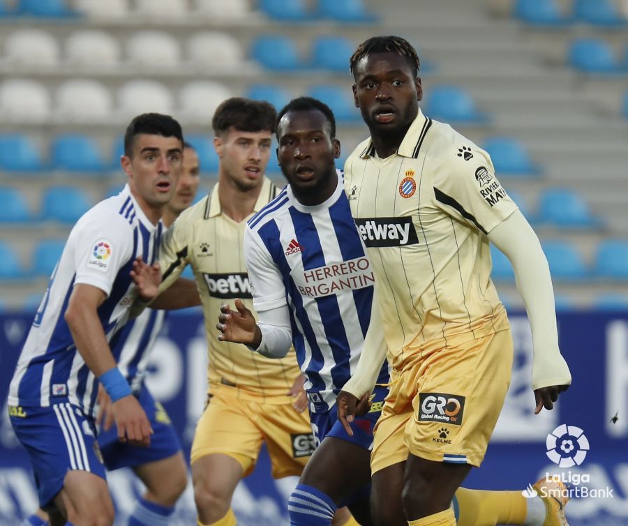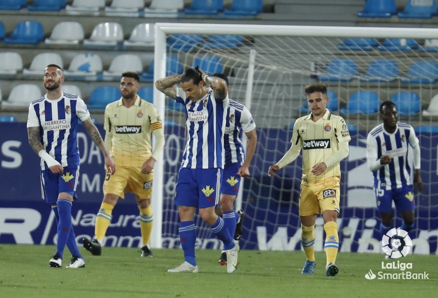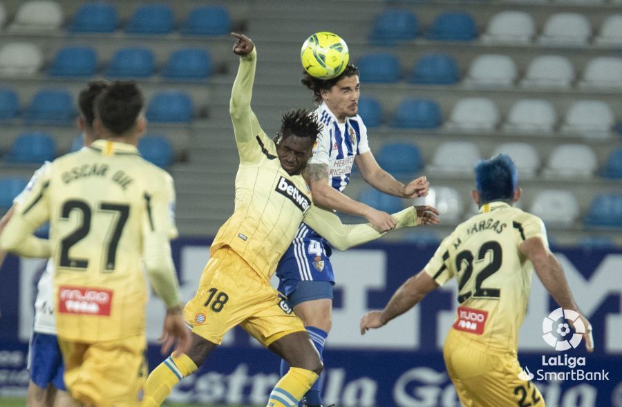 De hecho, se le quedó cara de tonto al comienzo al cuadro berciano, que recibió el primer mazazo en la primera aproximación españolista. Un centro de Pedrosa fue aprovechado por Dimata para adelantar a los pericos con un remate a la media vuelta. Poco después, un penalti infantil de Valcarce sobre Puado fue aprovechado por el propio atacante españolista para poner el 0-2. Era un monólogo el choque y la goleada pudo ser más aparatosa en los primeros minutos. Sin embargo, la suerte se alió con la Deportiva.