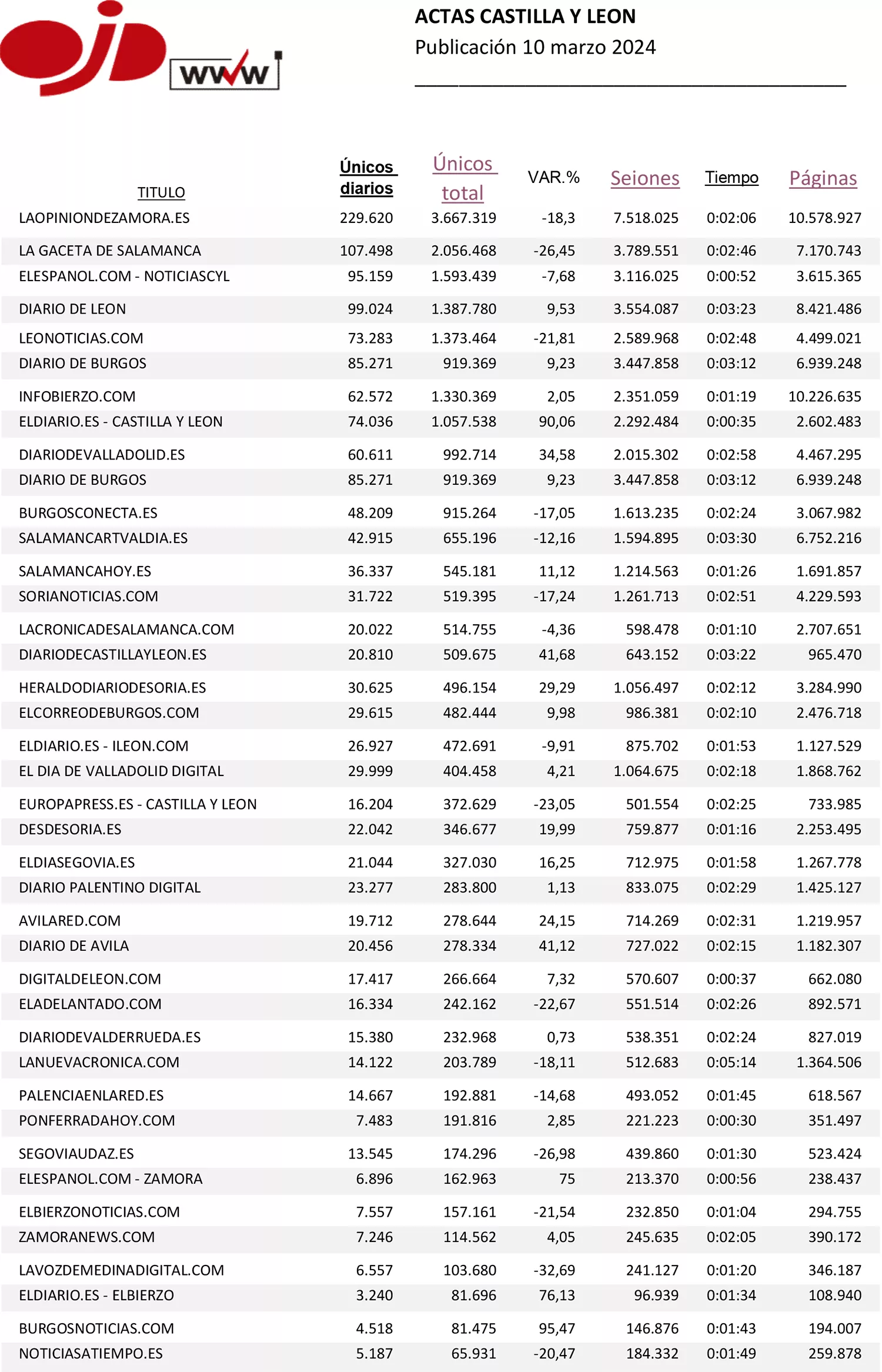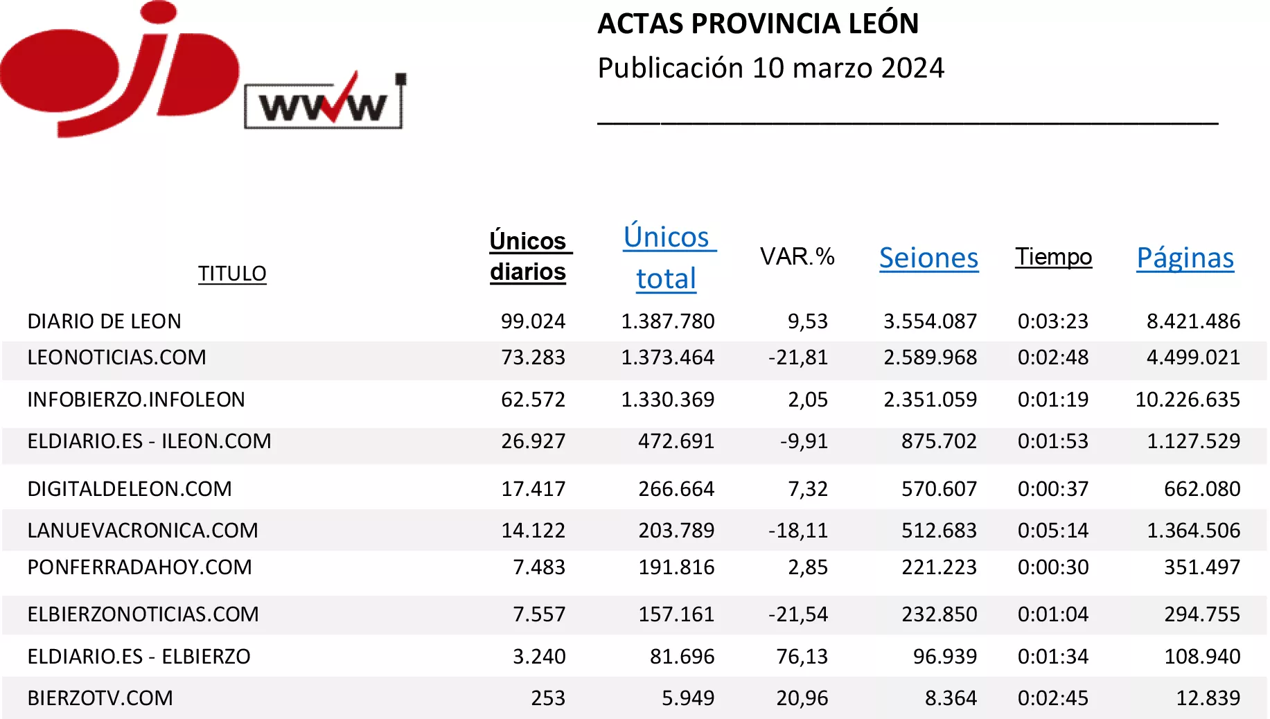 Cabe destacar que todos los Medios de Comunicación profesionales -digitales y versión web de diarios en papel- de la provincia, se someten a la auditoría de OJD... salvo uno berciano.