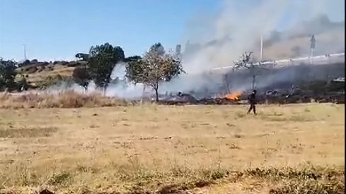 Los Servicios de Extinción de Incendios Forestales de la Junta de Castilla y León sofocan un incendio activo en San Román de Bembibre que comenzó de manera intencionada a las 18:01 y ha quemado ya 1 hectárea de superficie de pasto