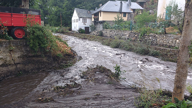 Según la versión del colectivo, los desbroces para sofocar el fuego, la "falta de limpieza" y el "poco caudal" del río han generado un caldo de cultivo que, con las tormentas que se han sucedido, provoca "una gran riada con lodos procedentes del incendio, piedras y troncos que amenazan con hacerse tapones y desbordar el caudal" a su paso por los pueblos de la zona.