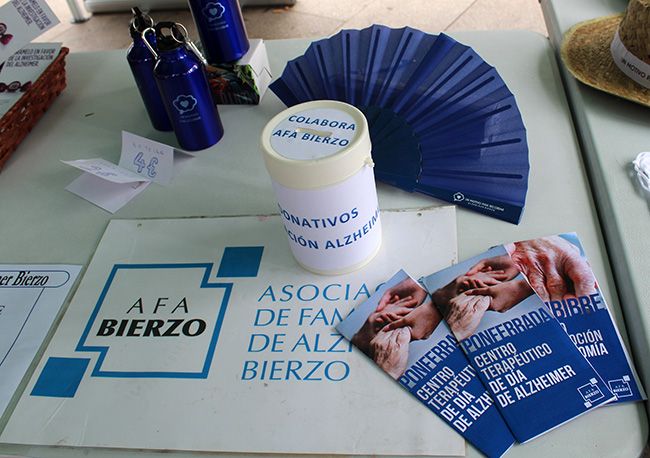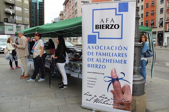 La Asociación de Familiares de afectados de Alzheimer (AFA) Bierzo ha culminado este domingo 21 de septiembre, Día Mundial del Alzheimer, una semana de actividades con una mesa informativa y sensibilizadora en la plaza Lazúrtegui de Ponferrada. El objetivo de esta iniciativa, como ha explicado la presidenta de AFA, Ana Pilar Rodríguez, es dar visibilidad a esta dolencia y reivindicar ayudas a diferentes niveles para mejorar la vida de los afectados, sus familiares y cuidadores. Actualmente en El Bierzo hay en torno a 1.500 personas diagnosticadas con esta enfermedad, pero desde AFA calculan que otras 500 la padecen sin diagnóstico.