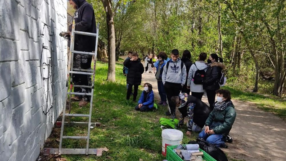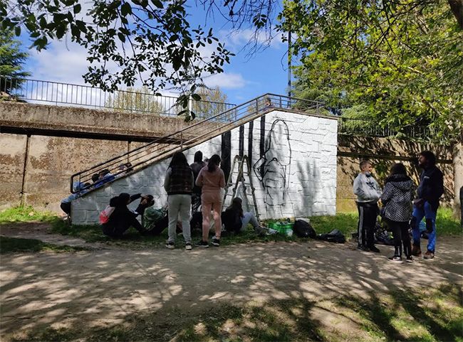 Este mural que los alumnos están realizando bajo la supervisión del artista local Asier Vera, está situado en el Paseo del Río, en las proximidades del puente Celso López Gavela. Además, el muralista ponferradino también ha sido el encargado de transmitir el mensaje a los alumnos del centro y les ha facilitado bocetos e ideas para la ejecución de la obra pictórica.