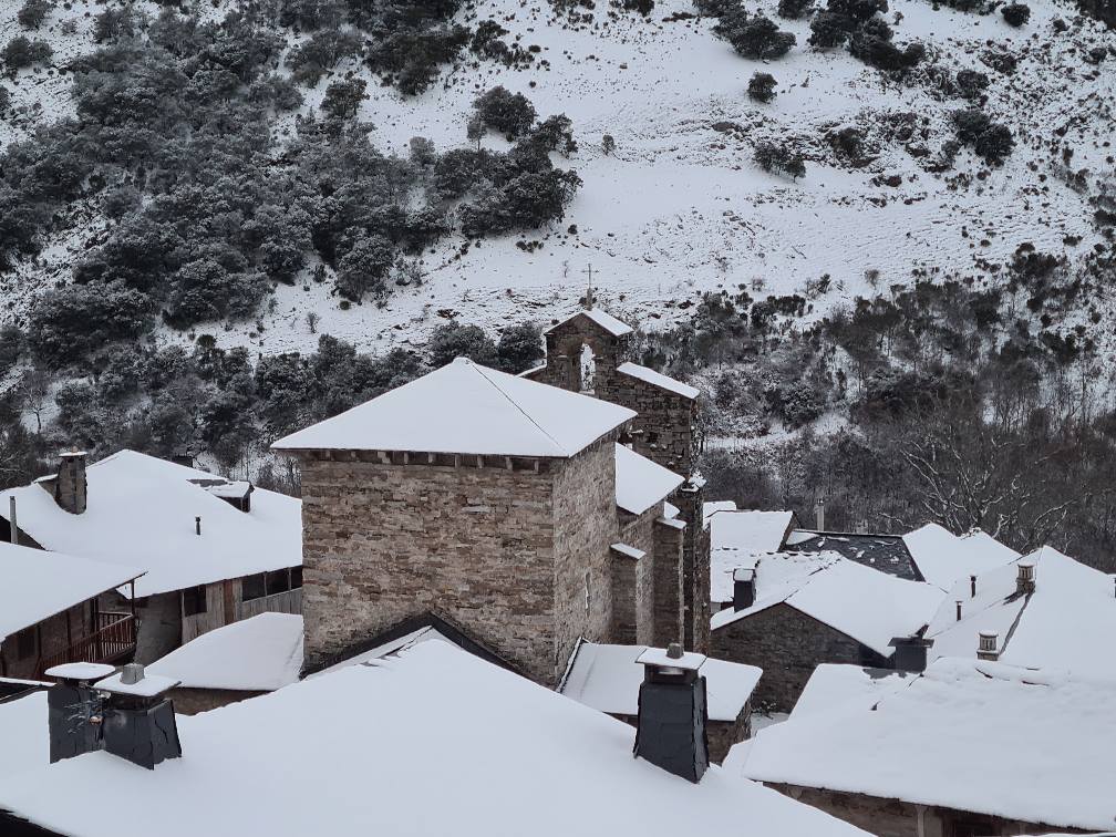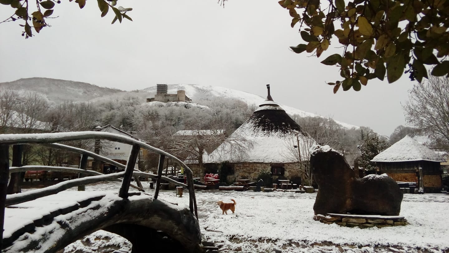 Y desde la Reserva de Ancares, en el oeste de la Comarca, otras 4 estampas entrañables que se ha viralizado. Nieve en Burbia, municipio de Vega de Espinareda (Foto Instagram: Casa Rural El Salgueiro / Reserva de la Biosfera de los Ancares Leoneses)