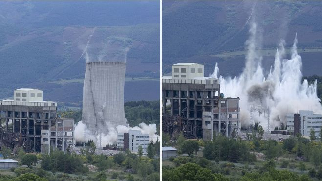 Voladura controlada de la torre de refrigeración de la central térmica de Anllares