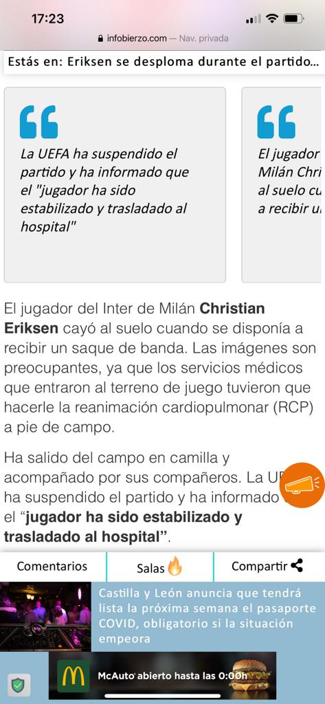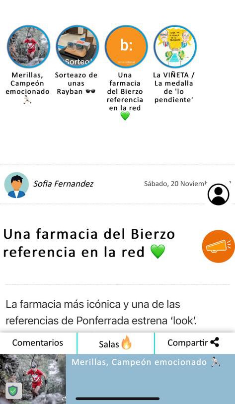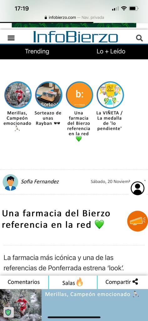 Muy parecido al botón “Salas” que encontraréis en el Link en la Bio de Instagram y al pie de cada noticia de InfoBierzo, donde se abrirá una sala con noticias con alta intensidad de debate de las últimas horas, donde seguir comentando con otros lectores/usuarios.