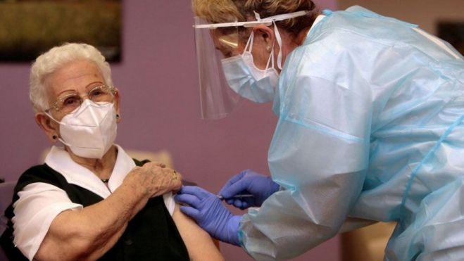 Araceli, una mujer de 96 años residente en 'Los Olmos', en Guadalajara, ha sido la primera persona vacunada en España contra la Covid-19, este domingo a las 9 de la mañana. Es la residente de mayor edad de la residencia, y tras ella la segunda persona vacunada, en la misma residencia, fue Mónica Tapias, auxiliar de enfermería, la trabajadora más joven del centro.