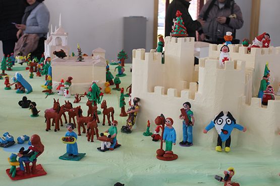 A esta muestra, que contará con un stand colectivo, para permitir que participen más artesanos con sus productos aunque no puedan estar presencialmente, hay que sumar la nota de creatividad y color que han puesto más de 1.000 niños de 7 colegios del municipio dando vida a un Belén de plastilina echo, íntegramente, por ellos. "Algunos han confeccionado las piezas en el cole y otros han venido hasta la estación para hacerlas 'in situ' y colocarlas en el espacio de 27 metros cuadrados dispuesto para estas exposiciones navideñas". Desde el Castillo de los Templarios a la Basílica de Santa María o la Ponferradina... Los pequeños han plasmado cuál es su percepción de Ponferrada mediante cientos de figuras muy originales.