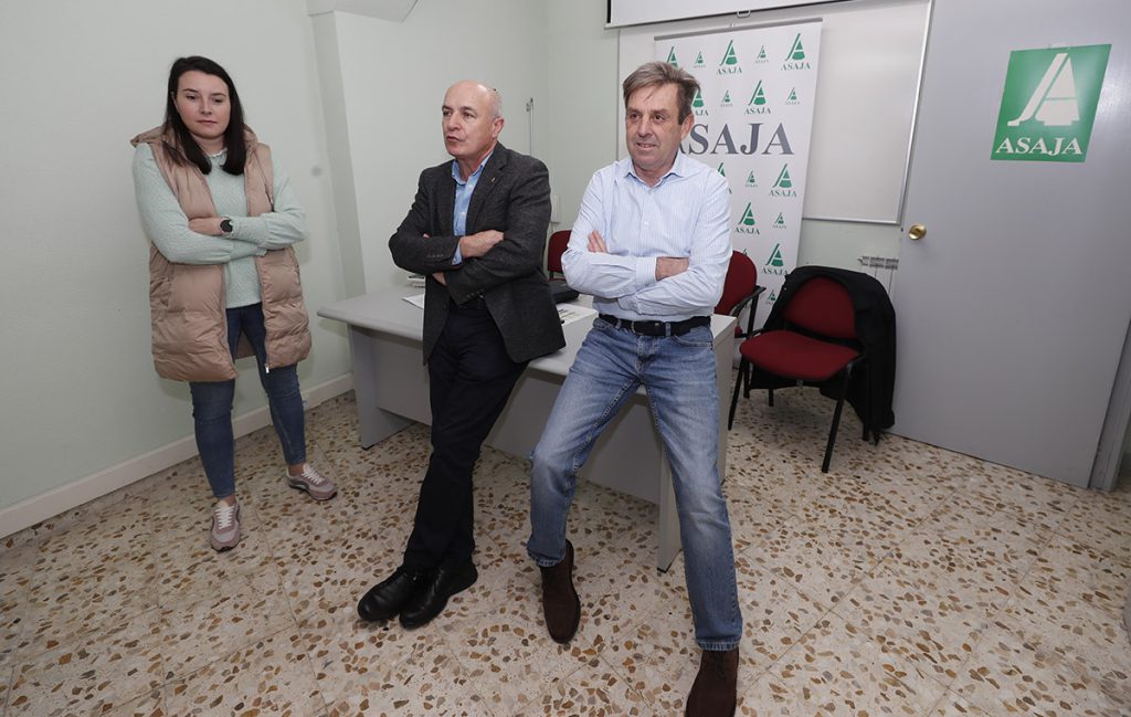 El presidente de Asaja León, Arsenio García, y el secretario general, José Antonio Turrado, valoran el año agrícola y el proceso electoral para medir la representatividad de las organizaciones agrarias, junto a la vicepresidenta y delegada en el Bierzo, Begoña Bello