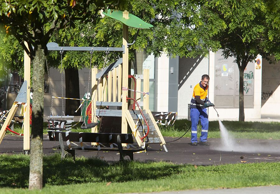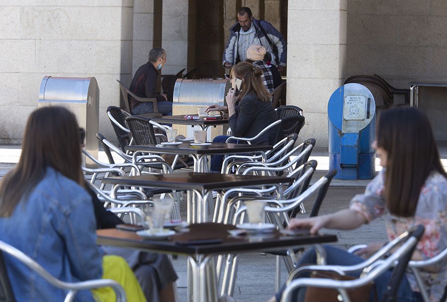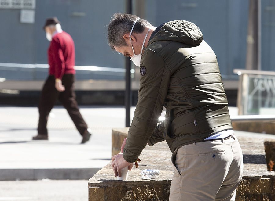 En las zonas con más tradición hostelera de la ciudad, como el casco histórico o la plaza Fernando Miranda, los locales afrontaban la mañana con estrategias desiguales, mientras que la tónica general en el barrio de La Rosaleda fue optar por la apertura. En la plaza de la Encina, uno de los locales que instaló su terraza en la calle fue la pizzería La Capricciosa, cuyo responsable, Marco Peparini, explicó que en los últimos días han intensificado en el establecimiento la limpieza a fondo de todo el mobiliario y la desinfección de la cocina. Además, el local dispone de gel desinfectante y el personal usa mascarillas y guantes. “Vamos a ver cómo funciona la cosa y a ver si la gente se anima”, explica Marco, que valora que la nueva situación le permite trabajar con unas 14 mesas, la mitad del aforo habitual en el exterior.