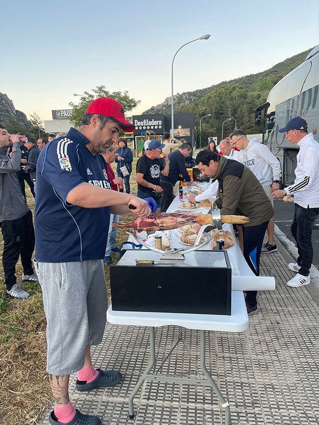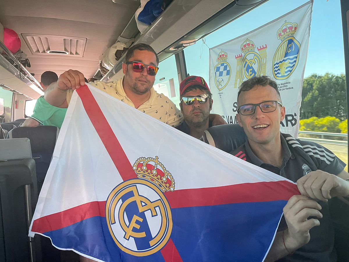 La peña futbolera 'Real Madrid El Bierzo' se ha subido a un Supra con destino Paris para no perderse la final de la Champions entre el Real Madrid y el Liverpool. Así, este grupo de aficionados subió en la jornada del viernes en un Supra a las 17:00 horas para llegar a Paris a primera hora de este sábado. Un largo viaje que han conseguido amenizar con buena compañía, comida y vino casero, y sobre todo, las ganas de ver a su partido ganar la Champions.