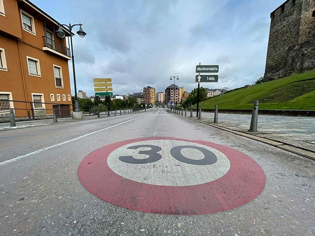 En concreto en Ponferrada, la nueva normativa se inaugura bajo el lema "Ponferrada 30". Así, las 8 puertas hacia la 'almendra central' donde entra en vigor el límite de 30km/h serán: Montearenas destino el centro de la ciudad, Avenida de Asturias, Avenida de Galicia, Avenida de Milán, Avenida de Portugal dirección centro de la ciudad, Avenida de Molinaseca, Avenida de Sanabria y Avenida de Santiago.
