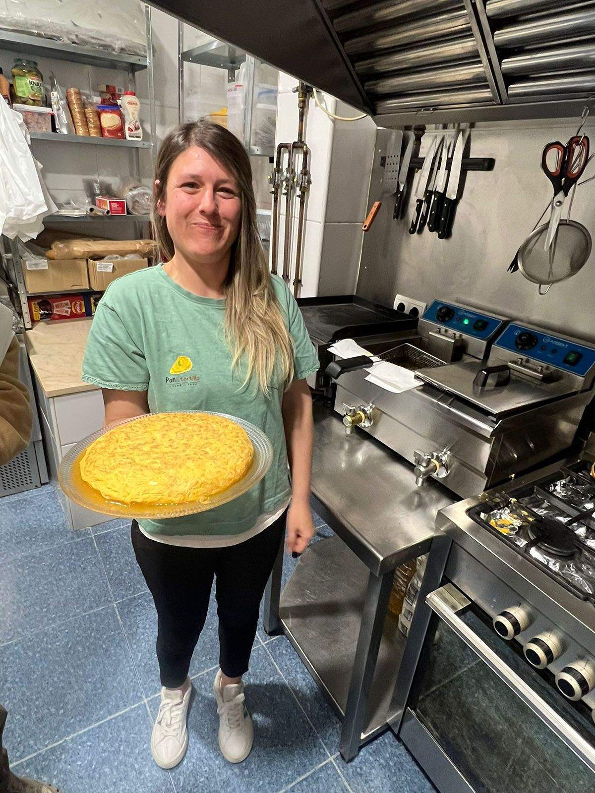 Foto: Jennifer Pacheco del establecimiento Pan y Tortilla sosteniendo la tortilla catada por los críticosEl amor por la cocina, y más concretamente por la tortilla de patatas, ha hecho que el Bierzo pueda optar a tener la mejor tortilla de patatas del mundo. Y es que como cuenta, Jennifer, una santanderina afincada en Ponferrada, "la tortilla española es solo nuestra, por lo que no sólo se trata de un campeonato a nivel nacional". Su local Pan y tortilla no deja de ser uno de los más populares de la capital del Bierzo, tanto su local físico, como sus plataformas de comida a domicilio reciben varios pedidos diariamente, y es que su tortilla se ha hecho un hueco en los domicilios ponferradinos.