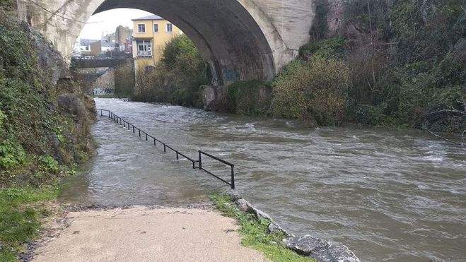 Así se desborda el Sil a su paso por el casco urbano de Ponferrada y los Bomberos atienden 25 incidentes