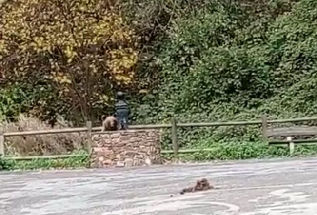 - Cuando los osos caminan por una carretera o una pista transitable, hay que reducir la velocidad y encender luces de emergencia para que el animal entre con tranquilidad al monte. -