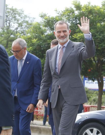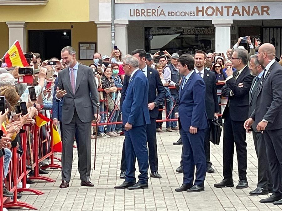 Aparece el Rey de España y se saluda con las autoridades que esperaban su llegada.