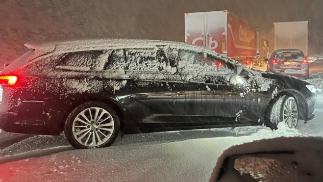 La Borrasca Herminia golpea con fuertes rachas de viento, lluvia intensa y nieve a lo largo y ancho de la provincia de León. En el Puerto del Manzanal, en plena vía principal de la A-6, la nevada ha sorprendido a numerosos conductores atrapados.