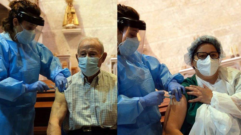 “Nerviosos, pero a la vez muy contentos y responsabilizados por la oportunidad que supone para todos esta vacuna”. A las 11.07 llegaban a la residencia Santa Eugenia de Cevico de la Torre (Palencia), en un taxi escoltado por la Guardia Civil y procedente de la capital provincial, Eloy, Andrea y Beatriz, los tres sanitarios encargados del dispositivo. Portaban una nevera que guardaba la esperanza, no solo de los residentes y trabajadores del centro, sino de toda una Comunidad Autónoma, que a partir de mañana generalizará la vacunación contra el COVID-19. Hoy, de forma simbólica, arrancó en el Cerrato palentino, con dosis a 82 usuarios y 20 trabajadores. Los primeros, Áureo López, de 88 años, y Mari Bilbao, la supervisora, quienes invitaron a la sociedad a vacunarse.