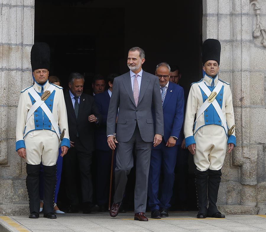 Después se ha asomado al balcón del Ayuntamiento para saludar a los vecinos que se habían acercado hasta la plaza consistoria. Sin embargo, un momento icónico ha ocurrido instantes antes de que el monarca subiera a al coche oficial, cuando la Panadería Liébana, anexa a la Casa Consistorial de Ponferrada, ha hecho entrega de sus productos al rey Felipe VI, como homenaje.