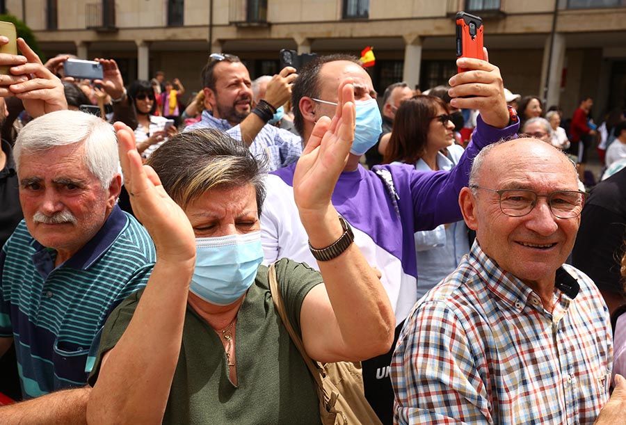 La Plaza del Ayuntamiento de Ponferrada esperaba impaciente a la llegada del Rey Felipe VI, que vista la casa consistorial de la capital berciana después de su recorrido por el Campus de la ciudad (VER NOTICIA). Entre los vecinos de la Comarca que se han acercado hasta la Plaza está el alcalde de Villamartín del Sil, que se ha mostrado especialmente ilusionado por la llegada del monarca. Aproximadamente han sido más de 2.500 personas, tal y como constatan desde la Policía Nacional, en un primer momento se habrían contabilizado las 2.500, aunque más tarde la cifra ha aumentado y, por tanto, hasta el momento, no existe una cifra oficial.