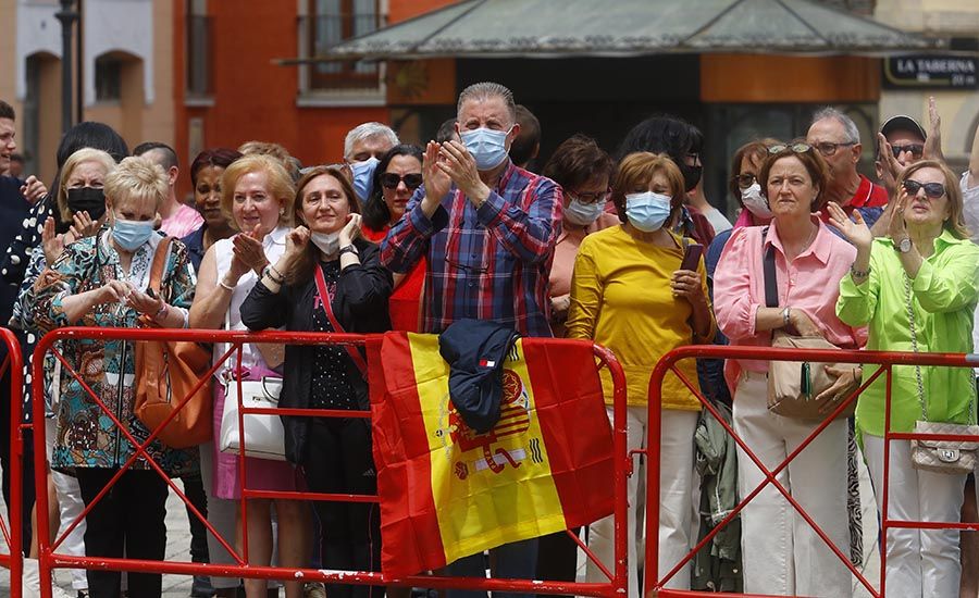 Centenares de personas se agolpan en la plaza del Ayuntamiento de la capital berciana para saludar al monarca entre aplausos y vítores